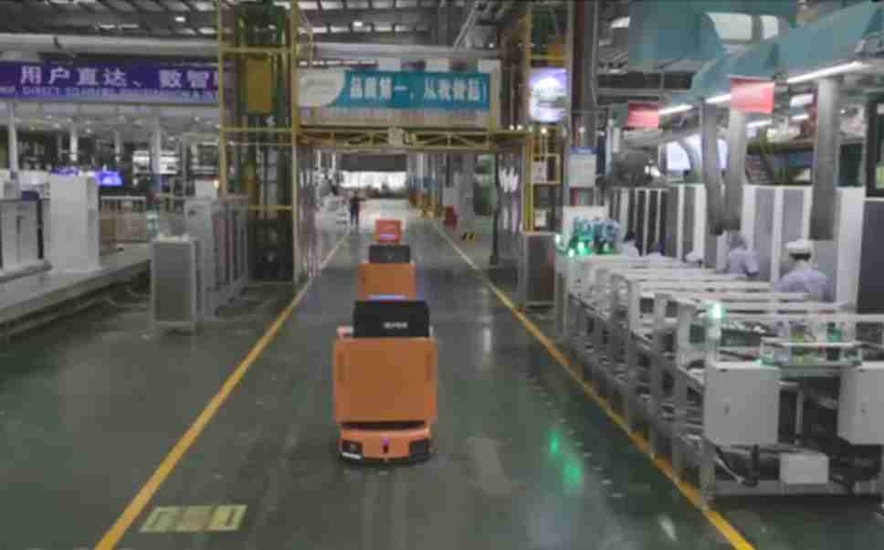 为车载冰箱物流配送打造的智能解决方案,,包含产中物流通过潜伏举升AMR搬运至线边,,产后成品物流智能仓储,,流程包含产中物流智能齐套入库,,线边安灯叫料AMR智能配送至线边,,,成品入库、、出库,,,通过无人堆高车机器人,,智能仓储管理替代人工作业管理,,,实现更高存储、、、、更高效率、、、更具柔性化的解决方案。。